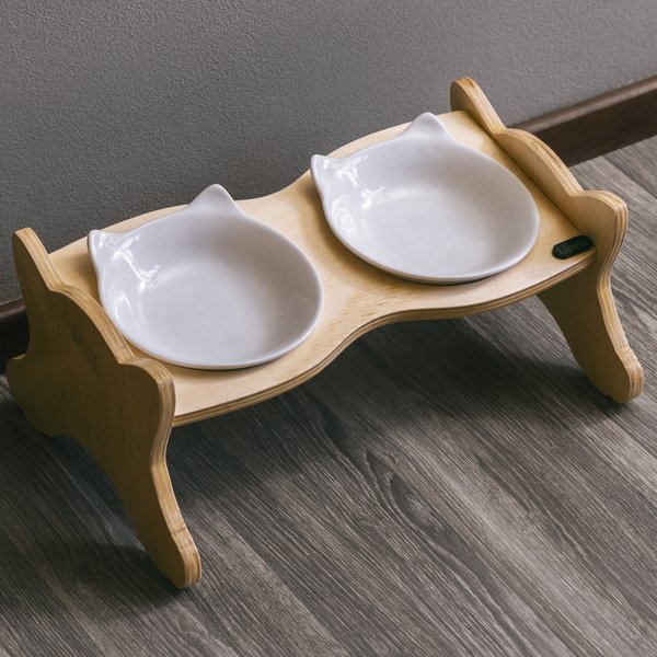 Comedouro para Gatos em Madeira com Potes de Porcelana 🐱